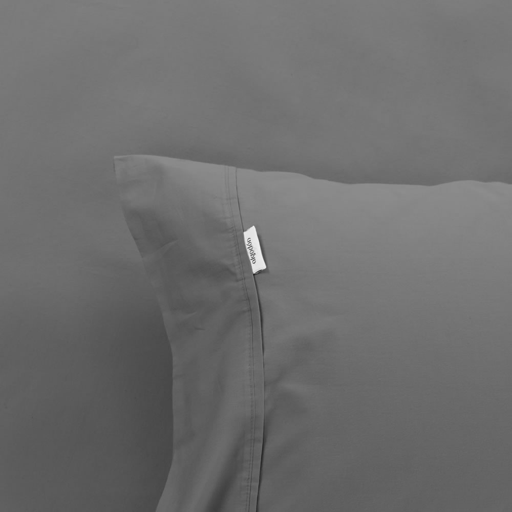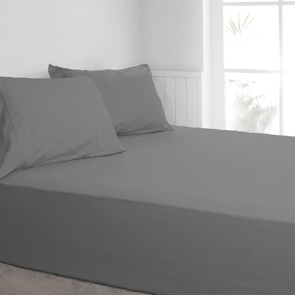 100% Cotton 300TC Sheet Set Algodon Charcoal Grey is an elegant bed sheet set in Grey colour. Good quality pure cotton fabric fitted sheet and pillowcases wear and wash well, feel smooth and let your skin breathe. Can be used to offset a quilt cover set with a blue or purplecolour pattern in your bedroom.