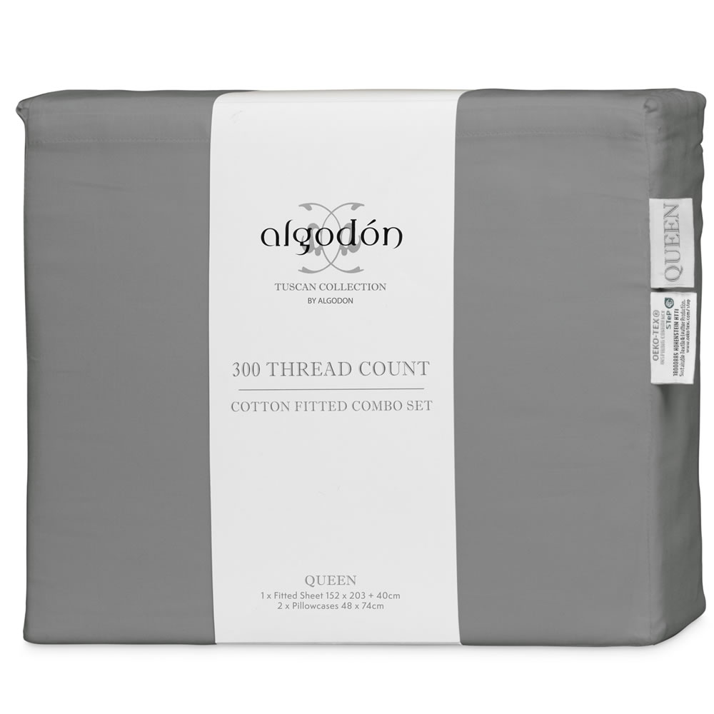 300TC Cotton Fitted Combo Set Algodon Silver Grey